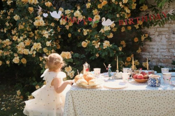 Materials: Cups: Paper, Plates: Paper,Napkins: paper, Garland: paper, cotton string , Balloon: Aluminum foil, Cake toppers: paper, bamboo stick
